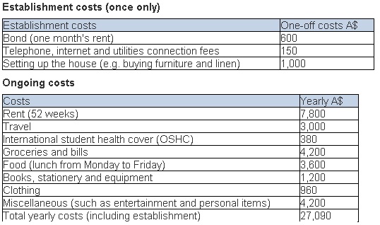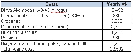 Rata rata biaya hidup mahasiswa Monash University per tahun berkisar antara AUD 22,592 sd AUD 27,090 dengancontoh rincian sebagai berikut :