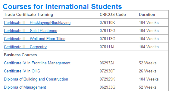 Mungkin bagi anda yang mau ambil jurusan yang lebih bergengsi seperti Akuntansi, IT atau engineering itu juga sangat bagus dan sedang dibutuhkan di Australia, tapi biasanya biaya kuliahnya lebih tinggi dan persyaratan masuk seperti nilai akademik dan IELTS juga tinggi, jadi bidang construction skills training ini sangat cocok bagi anda yang ingin Permanent Resident ke Australia dengan biaya yang terjangkau.