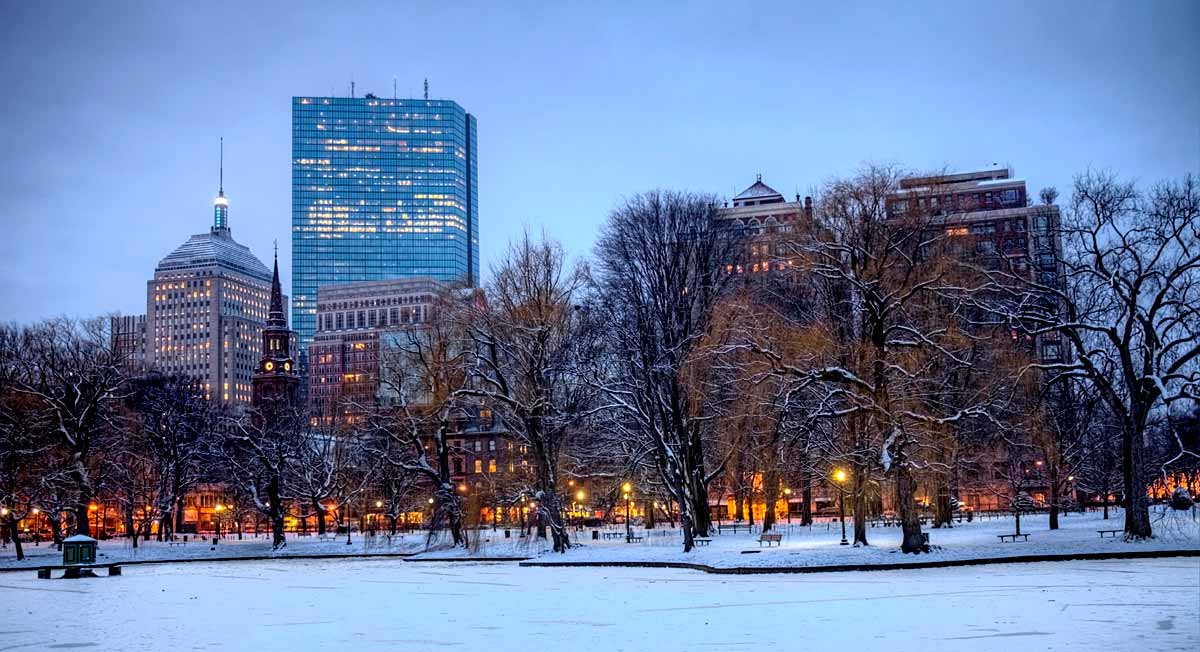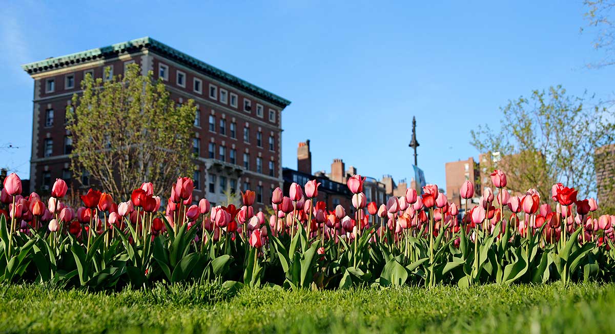 Kampus utama berlokasi di pusat kota Boston yang dikenal sebagai Beacon Hill, berdekatan dengan Massachusetts State House dan Massachusetts Supreme Judicial Court. Selain kampus utama di Boston, terdapat kampus satelit di Madrid, Spanyol, dan Cape Cod, Massachusetts.