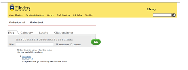 linkit.flinders.edu.au/flinders/az , link yang satu ini berfungsi buat kamu yang mau cari eBook ataupun e-Journal. Setelah kamu kllik link itu kamu bisa ketemu tampiilan seperti dibawah ini.