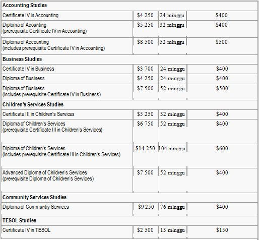 Biaya kuliah di Brisbane College untuk Mahasiswa Internasional