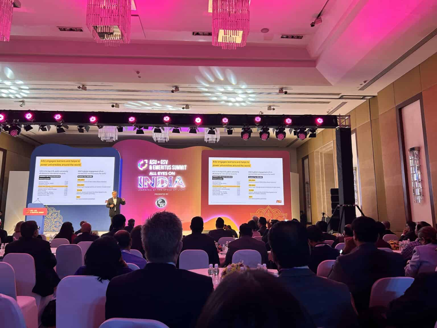 Berbicara pada pertemuan ASU+GSV di Gurgaon, India, Crow menyoroti misi universitas untuk memperluas akses ke pendidikan tinggi, mendorong inovasi, dan menjadi model untuk pembelajaran yang inklusif dan berpusat pada mahasiswa.