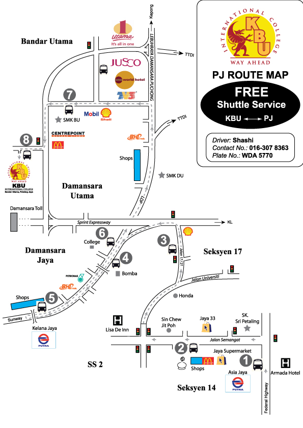Buat kalian yang hobi jalan-jalan atau pun kalian yang lagi melepas penat, KBU International College juga menyediakan layanan shuttle bus yang bisa berhenti di beberapa bus stop. Dengan shuttle bus ini, kalian bisa keliling berbagai mal dan restoran di daerah Petaling Jaya, misalnya aja 1 Utama, Centrepoint, JUSCO maupun kalian yang lagi pengen makan dan hangout di McDonalds dan Pizza Hut. Asik banget kan?! Pastinya kalian tertarik banget buat menikmati fasilitas yang lengkap banget dari KBU, buruan daftar dan selain belajar, nikmati fasilitas lengkap yang disediakan oleh KBU! Ada hal yang ingin anda tanyakan ? Jangan ragu , silahkan hubungi kami . Konsultasi dengan kami gratis .Email: info@konsultanpendidikan.com
