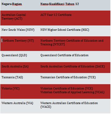 Across the different states and teritori, Tahun 12 atau tahun terakhir dari sekolah menengah, dikenal sebagai: